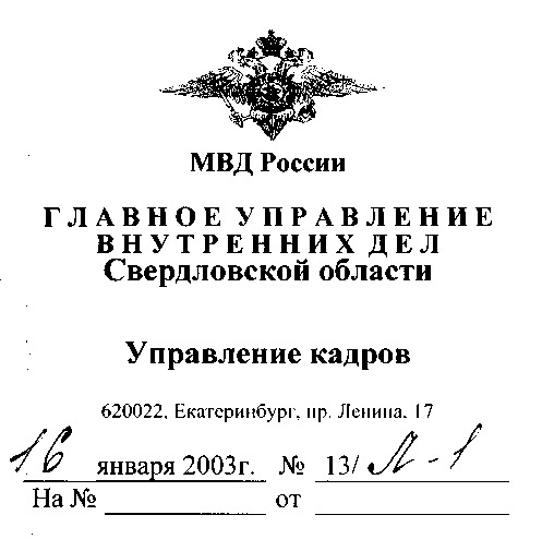 17.02.02 я был незаконно задержан вашими сотрудниками и доставлен в Октябрьский РУВД г. Екатеринбурга. Прошу провести служебное расследование и о результатах сообщить мне в установленный законом срок. В соответствии с Указом Президиум Верховного Совета СССР от 4 августа 1983 г. N 9779-Х “О ПОРЯДКЕ ВЫДАЧИ И СВИДЕТЕЛЬСТВОВАНИЯ ПРЕДПРИЯТИЯМИ, УЧРЕЖДЕНИЯМИ И ОРГАНИЗАЦИЯМИ КОПИЙ ДОКУМЕНТОВ, КАСАЮЩИХСЯ ПРАВ ГРАЖДАН” прошу выдать мне копии всех документов, относящихся к моему задержанию.