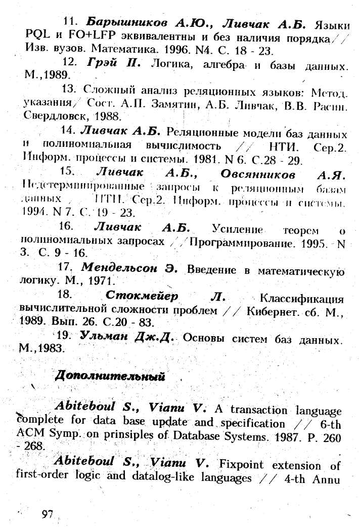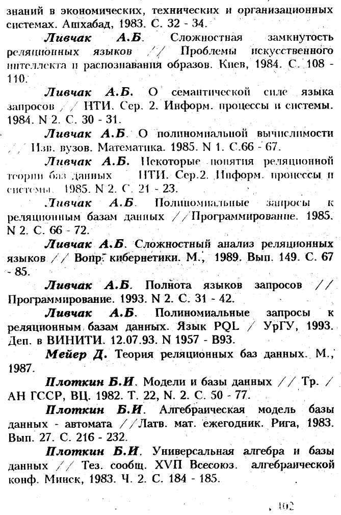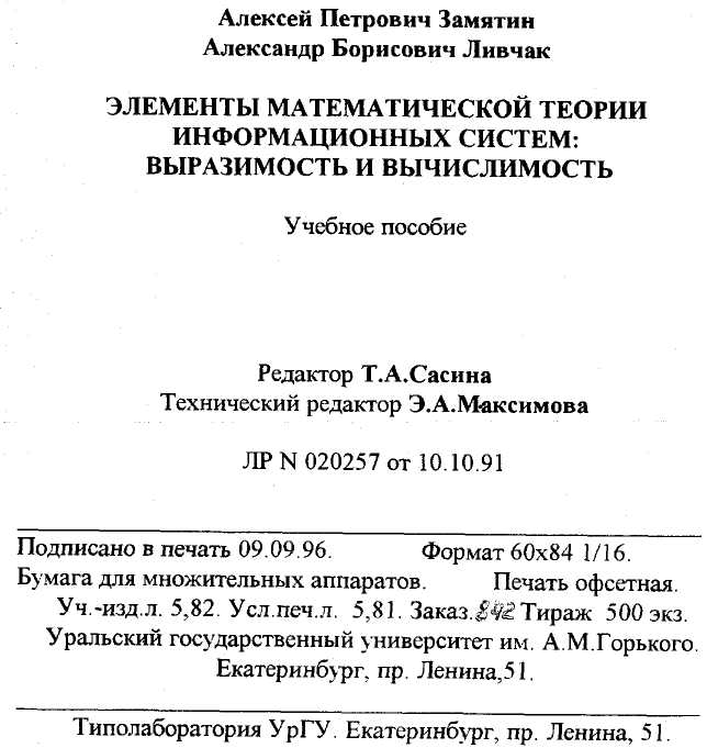 Замятин А.П., Ливчак А.Б. Элементы математической теории информационных систем: выразимость и вычислимость. Стр. 82-105. Начало см. http://livchak.narod.ru/Zamyatin0.doc